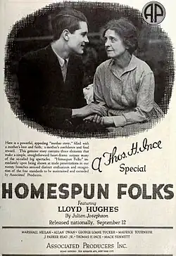 Homespun Folks is a 1920 American silent drama film directed by John Griffith Wray and starring Lloyd Hughes, Gladys George and George Webb.[1] It was produced on a budget of $137,000, and grossed $241,000 at the box offices.[2]