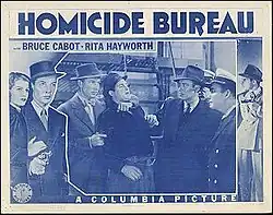 Homicide Bureau is a 1939 American action film, directed by Charles C. Coleman. It stars Bruce Cabot, Rita Hayworth, and Marc Lawrence.[1]
