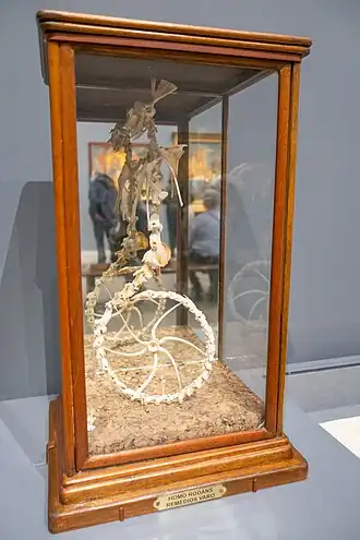 Homo rodans is a 1959 sculpture by the Spanish-Mexican surrealist Remedios Varo, constructed of discarded animal bones. The sculpture is a representation of a fantastical precursor to Homo sapiens, with a wheel instead of legs.[2]
