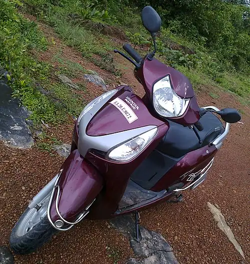 The Honda Aviator was a motor scooter produced by Honda Motorcycle and Scooter India. Its slogan is "Live Your Style". It has a four-stroke 109 cc (6.7 cu in) single-cylinder engine, HET air-cooled engine (the same as in the Dio and the Activa) which produces 8 bhp at 7000 rpm and maximum torque of 8.77 Nm at 5500 rpm.[2] The scooter has V-Matic transmission and can be kick-started or self-started. With the recently updated Honda Eco Technology (HET) the scooter has company-claimed efficiency of 60 km/L.[3]