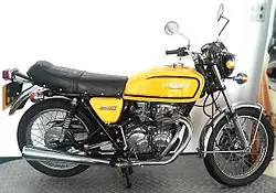 The Honda CB400F is a motorcycle produced by Honda from 1975 to 1977. It first appeared at the 1974 Cologne motorcycle show, Intermot, and was dropped from the Honda range in 1978.[3][4] It had an air-cooled, transverse-mounted 408 cc (24.9 cu in) inline four-cylinder engine with two valves per cylinder operated by a single chain-driven overhead camshaft. Fuelling was provided by four 20 mm Keihin carburettors. The CB400F is commonly known as the Honda 400 Four.[5][6]: 110
