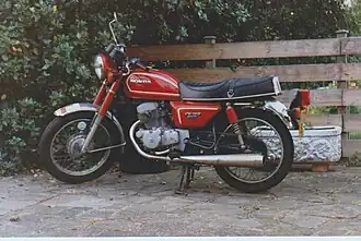 The Honda CD125TC Benly is a 124 cc (7.6 cu in), air-cooled, four-stroke, twin-cylinder "commuter" style motorcycle manufactured by the Honda Motor Company between 1982 and 1985 for the United Kingdom. Its engine size and power output were designed to conform to provisional licence restrictions of the time and it was a version of the Honda CD200 Benly introduced in the late 1970s, with the same four-speed constant mesh transmission (as the 200) but electric start only. The machine was identical in all other respects apart from the engine barrel size. It was equipped with an enclosed chain and capacitor discharge electronic ignition. Brakes were drum front and rear and it had both centre- and side-stands. Electrics were 12 volt, and the battery was housed in the right-hand, side-panel. The left-hand panel contained a small toolkit. Instrumentation was by way of two handlebar-mounted binnacles. One contained a speedometer, with odometer and trip meter and was in miles per hour with markings for kilometres and maximum speeds in gears. The other contained warning lights for main beam, ignition/neutral and indicators.