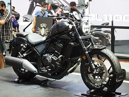 In 2021, the Honda CMX1100 Rebel was launched after the "smaller sister model" Honda CMX500 Rebel had been selling well since 2016.[1] It has a similar engine to the Honda CRF1100L Africa Twin.[2] The touring version CMX1100 Rebel T followed in 2023.[3][4]