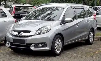 The Mobilio nameplate was revived as an MPV model based on the Brio platform, designed mainly for the Indonesian market. Developed by Honda R&D Asia Pacific,[8][9] it was first unveiled as a prototype model at the 21st Indonesia International Motor Show on 19 September 2013. Production of the Mobilio began on 15 January 2014 at Honda Prospect Motor's Karawang plant and sales began on 25 January 2014 in Indonesia. Trim levels offered were S, E, E Prestige and RS (since June 2014) with either a 5-speed manual or a CVT (E, E Prestige and RS only) transmission. The second generation Mobilio is powered by either the 1.5 L L15Z1 i-VTEC petrol engine or the 1.5 L N15A1 i-DTEC diesel engine for Indian market.[10] In the same year, the Mobilio won the Car of the Year Otomotif Award 2014 in Indonesia.[11][12][13]