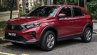 The Honda WR-V is a subcompact crossover SUV manufactured by Honda since 2017 and mainly sold for emerging markets. It is positioned below the HR-V/Vezel or the BR-V depending on the market where it is sold. For the first generation, it was a crossover-styled derivative of the third-generation Fit/Jazz with different front fascia and bonnet treatments. Introduced at the 2016 São Paulo International Motor Show, the first-generation WR-V was built and specifically sold for the South American and Indian market.[1][2] The second-generation model introduced in Indonesia in 2022 is based on the shortened second-generation BR-V's platform (also shared with the second-generation Amaze).[3]