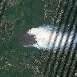 The Honey Prairie Fire was a 2011 wildfire that burned 309,200 acres (1,251 km2) of primarily scrub and brush in the Okefenokee Swamp of southern Georgia.[2] Because fire restores the prairie ecosystem, fire managers in the Okefenokee National Wildlife Refuge allowed the fire to burn. Fire fighters worked to preserve structures and keep the fire within the refuge rather than contain the flames.[2]