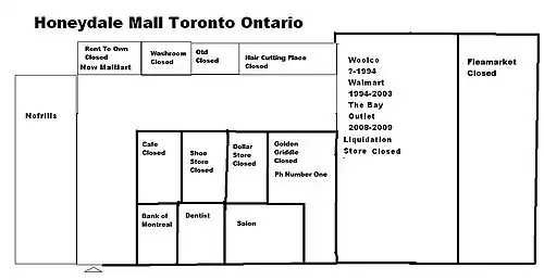 - ^ Jerrold Litwinenko (May 20, 2009). "Nothing Sweet about Etobicoke's Honeydale Mall". BlogTO by FreshDaily. Retrieved March 8, 2010.
