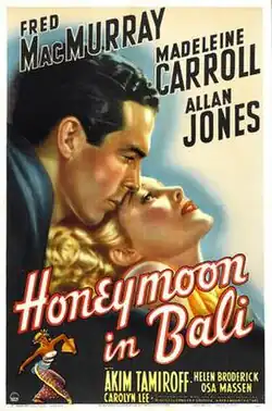 Honeymoon in Bali is a 1939 American romantic comedy film. It is also known by the alternative titles Husbands or Lovers and My Love for Yours. Virginia Van Upp's screenplay was based on the short stories "Our Miss Keane" by Grace Sartwell Mason in The Saturday Evening Post of May 24, 1923, and "Free Woman" by Katharine Brush in Redbook magazine of November–December 1936. In 1936 Paramount announced a film of Our Miss Keane to star Merle Oberon to be produced.[1]