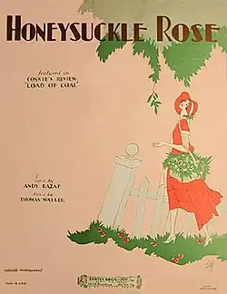 "Honeysuckle Rose" is a 1929 song composed by Thomas "Fats" Waller with lyrics by Andy Razaf.[1] It was introduced in the 1929 Off-Broadway revue "Load of Coal" at Connie's Inn as a soft-shoe dance number.[2] Waller's 1934 recording was inducted into the Grammy Hall of Fame in 1999.[3]