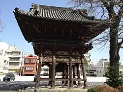 The wooden bell tower (shōrō) survived the war undamaged, and is said to be also donated by Baishō-in in Kyōhō 14 (1729).[5] The bell is suspended on the lower level, different from the typical bell tower style. The carved sculptures are also of high quality. It was named a City-designated Cultural Property in 2017.