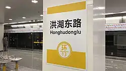 Honghudonglu station (Chinese: 洪湖东路站; pinyin: Hónghúdōnglù zhàn; lit. 'Honghu East Road station') is a metro station on the Loop Line of Chongqing Rail Transit in Yubei District of Chongqing Municipality, China.[1][2]