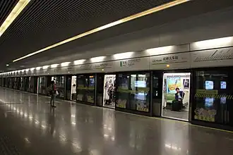 The westward extension of Line 2 toward Hongqiao railway station was completed in March 2010, however the station itself did not open until four months later, on 1 July 2010.[1] Line 10 services commenced on 30 November of the same year, providing another subway line into downtown Shanghai.[2] Line 17, which serves the western suburb of Qingpu District, began operations at the station on 30 December 2017, concurrent with the opening of the line.[3]
