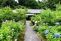 Honkō-ji (本光寺) is a Buddhist temple belonging to the Sōtō sect of Japanese Zen located in the town of Kōta, Nukata District, Aichi Prefecture, Japan. The temple is noted for its hydrangea flowers in spring. Its main image is a statue of Shaka Nyōrai.
