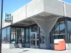 Honoré-Beaugrand station (French pronunciation: [ɔnɔʁe boɡʁɑ̃]) is a Montreal Metro station in the borough of Mercier–Hochelaga-Maisonneuve in Montreal, Quebec, Canada.[4] It is operated by the Société de transport de Montréal (STM) and is the eastern terminus of the Green Line. It is located in the district of Tétreaultville.[4] The station opened on June 6, 1976, replacing Frontenac station as the terminus.