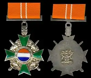The Honoris Crux Silver (Silver Cross of Honour), post-nominal letters HCS, was instituted by the State President on 1 July 1975.[3][4]