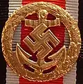 Of the other versions, the Navy clasp comprised a swastika superimposed on an anchor, with the Air Force clasp showing the Luftwaffe eagle, both types displayed within a circular gilt metal oak wreath.[6]
