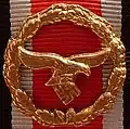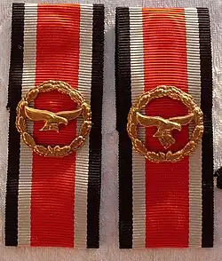 The Honour Roll Clasp of the German Air Force (Ehrenblatt der Deutschen Luftwaffe) was instituted on 5 July 1944, with the decoration introduced at the same time.[5] Air Force members who had previously received The Luftwaffe Honour Goblet or the Luftwaffe Honour Plate automatically received the Air Force Honour Roll Clasp.[6]