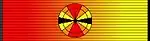 The medal hangs from a 37mm wide silk moiré ribbon of red on the right edge watering into yellow across its width. The ribbon bears a rosette of the same colours to indicate that it is an award "for exceptional services".[2]