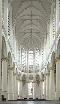Two related but different developments influenced the physical appearance and the governance of the St. Pancras church in the 16th and 17th centuries. The rise of especially the Calvinist reformation in the Netherlands and the Dutch revolt against Spain (1568–1648). The tension around the rise of the Protestant Reformation gave rise to two days of robbery and plunder of all churches in Leiden, including the St. Pancras. During the iconoclasm of August 1566 numerous religious artifacts and archives were looted or destroyed. A second wave of religiously inspired violence, this time extending beyond looting and including violence against persons, occurred in 1572. This second wave of violence occurred shortly after Leiden City council had declared itself for the revolt against Philip II, after starting discussions with the leader of the revolt, William of Orange, as early as 1570.[3] Troops under Lumey and loyal to the revolt had entered the city in June 1572 and participated in the second wave of violence.[4]