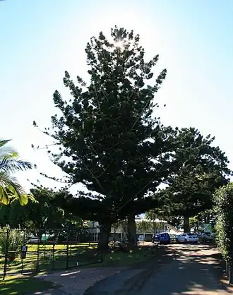 The two Hoop Pines (Araucaria cunninghamii) are located within the grounds of St Paul's Anglican School, Strathpine Road, Bald Hills. They are situated at the end of the school's main driveway, framing the entrance to the school's Administration Building, which is a late 19th/early 20th century former farmhouse.[1]
