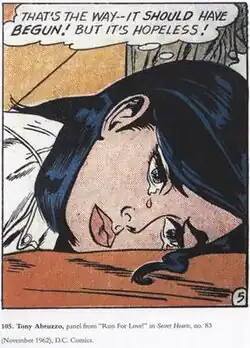 Hopeless is derived from a Tony Abruzzo-drawn panel from the story "Run For Love!" in Secret Hearts no. 83 (November 1962), DC Comics.[3]