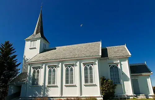 Hopen Church (Norwegian: Hopen kirke) is a parish church of the Church of Norway in Smøla Municipality in Møre og Romsdal county, Norway. It is located in the village of Hopen, along the northern coast of the island of Smøla. It is the church for the Hopen parish which is part of the Ytre Nordmøre prosti (deanery) in the Diocese of Møre. The white, wooden church was built in a long church style in 1892 by the architect Adolf Schirmer. The church seats about 260 people.[1][2]
