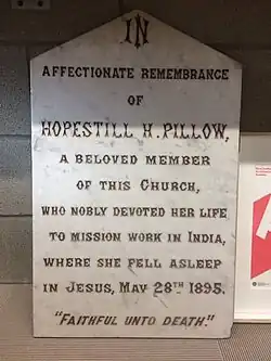 Hopestill Harland Pillow (28 June 1857 – 28 May 1895) was a Baptist missionary to India.