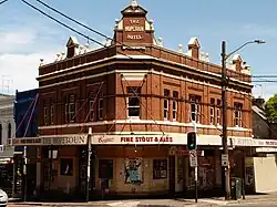 The hotel is a heritage listed building[7] and has occupied the site for over 150 years forming a landmark feature in Surry Hills. It is an important architectural example of an early Federation warehouse style face brick building.[2][8]