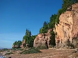 The Hopewell Rocks, also called the Flowerpot Rocks or simply the Rocks, are rock formations known as sea stacks caused by tidal erosion in the Hopewell Rocks Ocean Tidal Exploration Site at the Hopewell Rocks Provincial Park in New Brunswick, Canada. They stand 12–21 metres (40–70 ft) tall.