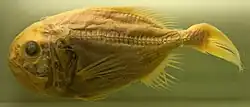 The flesh is firm with a mild flavour; it is sold skinned and filleted, fresh or frozen.[10] This species was first given the common name "Orange Roughy" by scientists in New Zealand in 1975 following the discovery of large aggregations during a deep-water research cruise.[11][12][13] A large-scale fishery for orange roughy subsequently developed around New Zealand, and imports into the United States increased where it was renamed from the less gastronomically appealing "slimehead" through a U.S. National Marine Fisheries Service program during the late 1970s that identified underused species that should be renamed to make them more marketable.[14]