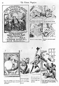 In 1848 Mayhew published the humorous sketches Change for a Shilling, Model Men, Model Women and Children,[1] and an edition of Cruikshank's Comic Almanac; in 1849 A Plate of Heads, with Paul Gavarni's drawings; The Toothache, with drawings by Cruikshank; another issue of the Comic Almanac, with Cruikshank's illustrations; and Guy Faux.[2]