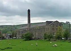 In 1837, two separately owned textile mills were built close together and in parallel, by the River Aire. They became known as the High Mill and Low Mill. The Low Mill was divided into two sections, each undertaking weaving, while the High Mill was a single operation, and undertook both spinning and weaving.[1] The 1841 census recorded that around 500 people, three-quarters of the Cononley workforce, were working in the textile industry.[2] From 1852, the two mills were under common ownership, although Low Mill was later demolished. In 1866, a further mill, the Aireside or New Mill, was constructed on the other side of the Aire, and in 1880, this mill was purchased by the owner of the High Mill, which later became known as Station Mill.[1] Despite these changes, by 1881, the proportion of textile workers had declined to under one half of those employed in Cononley.[2]