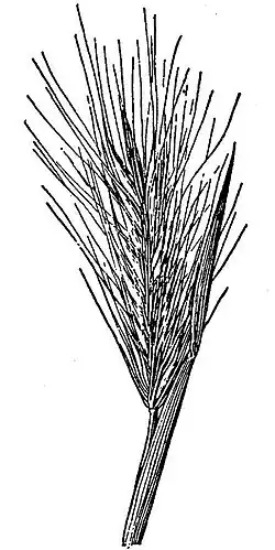 Hordeum arizonicum is a species of wild barley known by the common name Arizona barley. It is native to northern Mexico and the southwestern United States, where it grows in wet spots in desert regions, such as irrigation ditches. It can grow in somewhat saline soils. This is an annual or perennial grass forming erections 20 to 70 cm high. The inflorescence is a spike up to about 12 cm long made up of spikelets up to about 3 cm long each, usually tipped with awns.