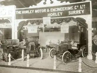 The Horley Motor & Engineering Co. Ltd was a British automobile manufacturer in Horley, Surrey, producing light vehicles between 1904 and 1909. The brand names were Horley and No Name. Horley collaborated with Lacoste & Battmann, the French supplier of vehicle components, assemblies and unbranded vehicles equipped with Aster, De Dion-Bouton or Mutel engines.[1][2]
