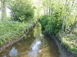 The Horloff is a river of Hesse, Germany. This 44.5 km long river passes through Hungen and Reichelsheim, and flows into the Nidda on the right bank in Florstadt.