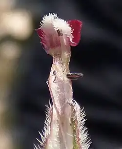 A distinctive biennial, 5 to 20 cm (2.0 to 7.9 in), hispid, with linear leaves, resembling an Anchusa with red tube-like flowers.[1]