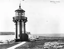 The tower construction ended in 1858, and it was the third lighthouse built in New South Wales, following Macquarie Lighthouse in 1818 and Nobbys Head Light in 1858.[3] It was opened by Sir William Denison, Governor of New South Wales, and named after the family of his wife Caroline,[2] daughter of Admiral Sir Phipps Hornby,[3][4][11] though it was known as the "Lower Light", to distinguish it from Macquarie Lighthouse, the "Upper Light".[3]