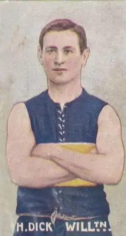 Horace Moir Dick (16 June 1877 – 20 January 1930) was an Australian rules footballer who played with Essendon in the Victorian Football League (VFL). He also played for Williamstown in the Victorian Football Association from 1901-06 (96 games, 42 goals) and was captain in 1905-06 and became the Club's first-ever coach in 1906.[1] Shortly after his one appearance for Essendon, Dick transferred to Footscray during 1907 and played 12 games for the Tricolours, kicking two goals. His final game was the first semi-final of 1907 where Footscray were defeated by Williamstown by 14 points, on their way to 'Town's first-ever VFA premiership.