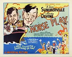 Horse Play is a 1933 American pre-Code comedy film directed by Edward Sedgwick and written by H. M. Walker and Dale Van Every. The film stars Slim Summerville, Andy Devine, Leila Hyams, May Beatty, Una O'Connor and David Torrence. The film was released on June 1, 1933, by Universal Pictures.[1][2][3]