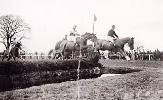 Wales has produced several jockeys of note, including Jack Anthony who won the Grand National on three occasions (1911, 1915 and 1920),[6] Hywel Davies who won it in 1985 and Carl Llewellyn who won the race in 1992 and again in 1998. Another notable Welsh jockey was Dick Francis, who was British jump racing Champion Jockey in the 1953-54 season and was famous for riding Devon Loch when the horse slipped close to the winning post when leading the 1956 Grand National.[7] In retirement Francis became a best-selling author of crime novels set in the racing world.