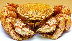 The horsehair crab (Erimacrus isenbeckii) is a species of crab which is found mainly in the Northwest Pacific, around the Hokkaido coast in the Sea of Okhotsk and the Western Bering Sea and is an important commercial species used in Japanese cuisine.[1][2] It is also known by its Japanese name, kegani (ケガニ "hairy crab").