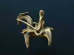 Among Grassland populations, the horse's tail was traditionally used to prepare protective talismans for military chiefs sent into conflict.[83] Bronze, tin, silver, copper or iron talismans called Putchu Guinadji ("horses of madness"), traditionally made in Maroua and depicting small horse riders, are still used (in 2018) as a remedy against possession and insanity by the Kotokos, Fulanis, Guizigas, Kanuris, Mafas and Massas.[83]