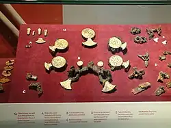 The importance of horses in the mythology and symbolism of the Germanic peoples dates back at least to the Nordic Bronze Age and shows continuity up until their Christianisation, likely stemming from aspects such as their practical importance, and inherited traditions from their Indo-European ancestors.[1] Horses are depicted throughout the Bronze Age, in art such as rock carvings and on holy razor blades.[1] The Trundholm Sun Chariot for example, dating to around 1400 BCE, consists of a horse pulling a wagon upon which sits a model of the sun and was found in a bog in Denmark.[2]