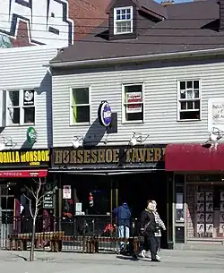 The building, erected in 1861, previously housed a blacksmith.[4] Originally an 87-seat saloon, it was advertised in recent decades as a "Country Roots n' Rockabilly Music Tavern". The Horseshoe Tavern welcomed blues and folk artists in the 1960s; reggae, mod, punk and new wave acts in the 1970s and 1980s; and then alternative rock and everything from ska, surf and swing to Celtic music and alternative country from the 1990s onward.