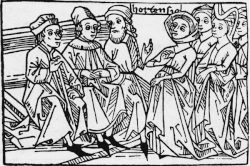 ![]() Hortensia making her case to the Roman authorities on a colored woodcut from the 15th-century German translation of Giovanni Boccaccio's Concerning Famous Women | |