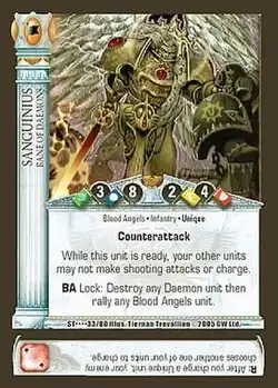 Horus Heresy is an out-of-print collectible card game originally produced in 2003 by Sabertooth Games. The game is set in the Warhammer 40,000 fictional universe developed by parent company Games Workshop.[1] It attempts to recreate the struggle between the Loyalist forces of the Emperor of Mankind and the Traitor forces of Warmaster Horus, during the civil war known as the Horus Heresy. The game's development and sale by the publisher were discontinued in 2008, following financial difficulties at the parent company.