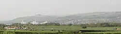 Horwich extends to 3,230 acres (13.1 km2) and measures 3 miles (4.8 km) from north to south and 2 miles (3.2 km) west to east. The River Douglas flowing in a south westerly direction forms part of its northern boundary.[28] The landscape to the north is dominated by Winter Hill, Rivington Pike and the West Pennine Moors. The highest point is 1,475 feet (450 m) on the moors in the north from where the ground slopes down towards the south and west, where the lowest land is about 350 feet (110 m). On Wilders and Horwich Moors the underlying rock is Millstone Grit, and in the intermediate slopes are found the Lower Coal Measures of the Lancashire Coalfield. The Middle Coal Measures are found in the southwest of the township.[7]