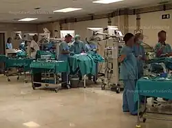 The concept used in the present article for Virtual Hospital is not the same as the one used in Virtual Hospital (to interconnect villages in the developing world using Telemedicine): a Virtual Hospital in this context is intended to resemble a real one except that the patients are replaced by simulators.