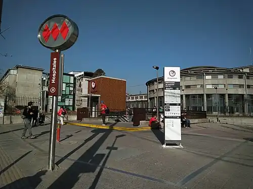 Hospitales is an underground metro station of Line 3 of the Santiago Metro network, in Santiago, Chile. It is an underground, between the Plaza Chacabuco and Puente Cal y Canto stations on Line 3. It is located at the intersection of Independencia Avenue with Profesor Zañartu Avenue. The station was opened on 22 January 2019 as part of the inaugural section of the line, from Los Libertadores to Fernando Castillo Velasco.[3]