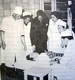 On 15 February 1952, Fatemi was delivering a formal speech at the grave of the journalist Mohammad Masud who had been assassinated in 1948.[9] There Fatemi became the target of an unsuccessful assassination by Mohammad-Mehdi Abdekhodaei of the Fadayan-e Islam, which also had planned to assassinate Mosaddegh.[12][13] In the shooting attack, Fatemi suffered serious injuries which sidelined him for the next seven or eight months, and left permanent wounds.[14]